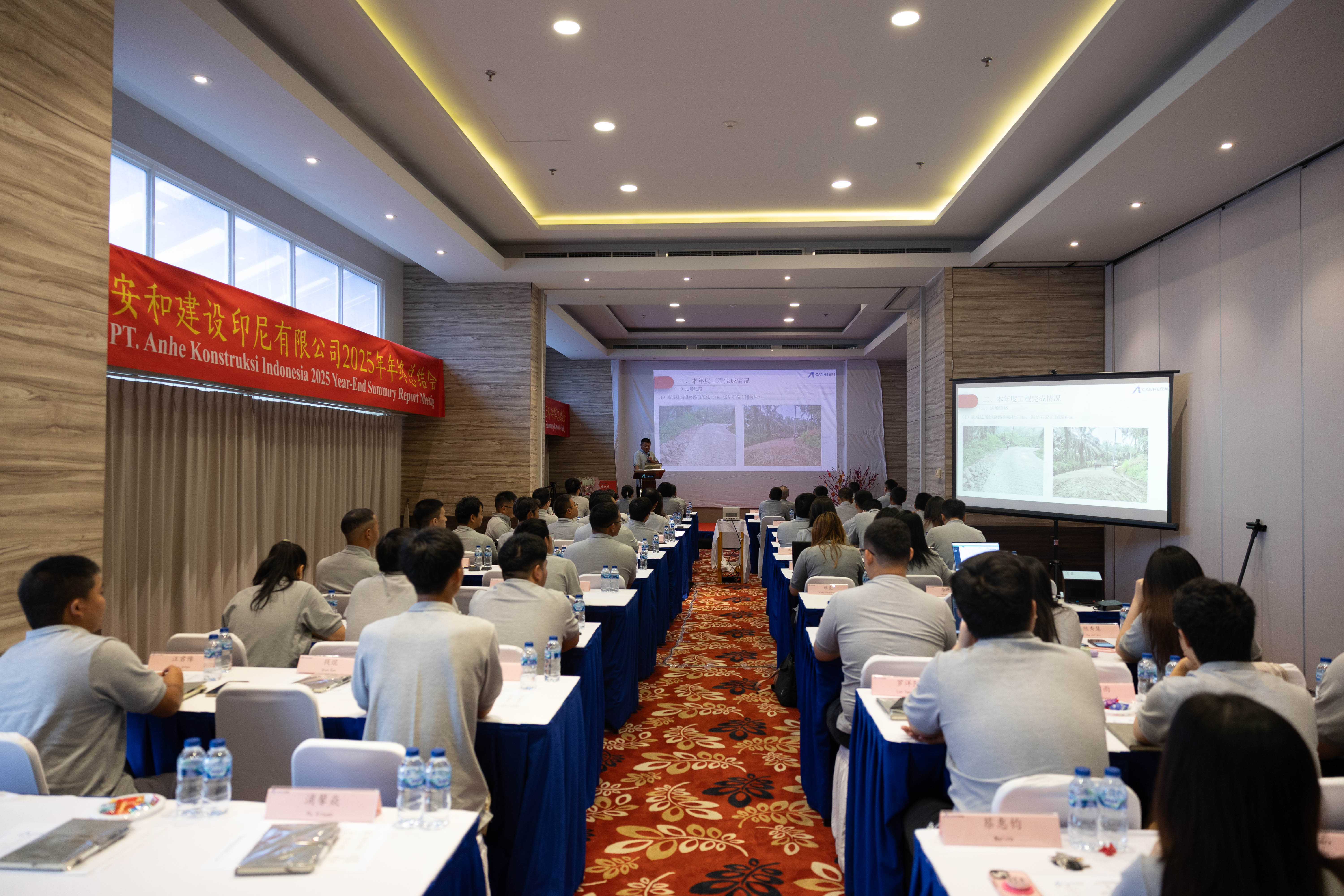 2026年2月9日,公司以“现场+线上”相结合的方式,成功召开2025年度年终总结会。主会场设在印尼雅加达总部,各项目部及成都代表处同步设立分会场,构建了主会场与多分会场高效联动的参会模式。会议由综合部总经理吴美丽女士主持,董事长周跃飞先生作总结讲话,全面回顾过去一年的奋斗历程,并系统部署新一年发展战略。